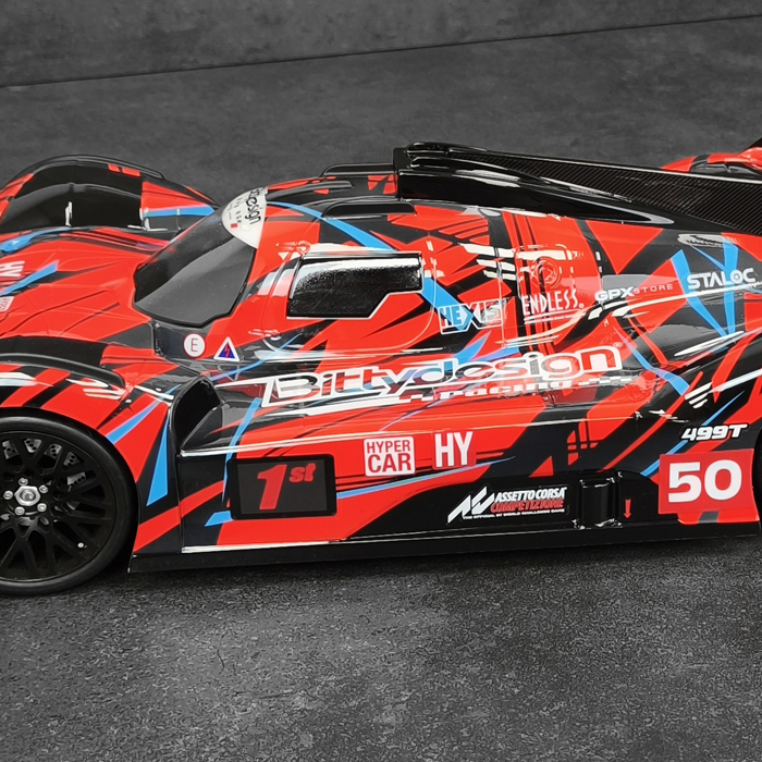 The Hypercar class represents a new challenge for touring car racing, where aerodynamics plays a key role that's why we have used our expertise to design the 499T body shell, specifically molded to fit perfectly on the Tamiya TT-02 and similar models.