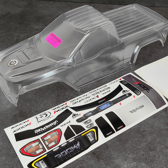 The ROCK1 body shell is sold transparent and pre-cut, fixing to any frame with a 313mm (12.3") wheelbase is done using the std. body post and clips.
